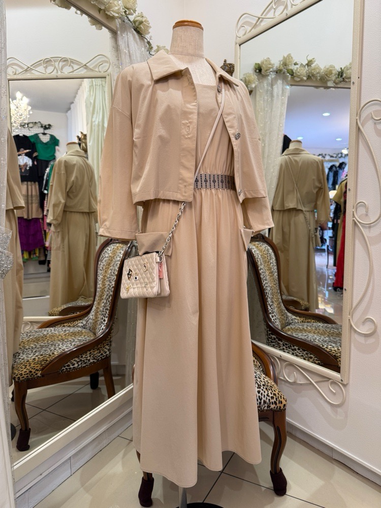 - ライトベージュフーディーワンピース ♡ シャギーニットカーディガン