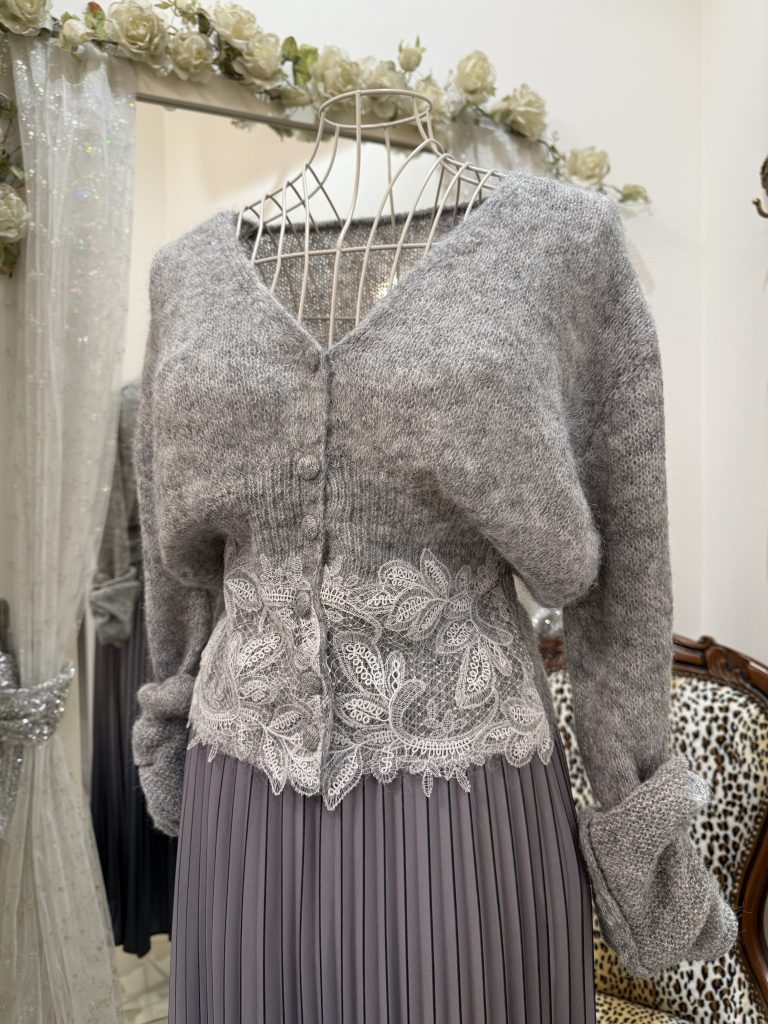 レースをあしらったふんわりモヘアニットカーディガン ♡♡♡