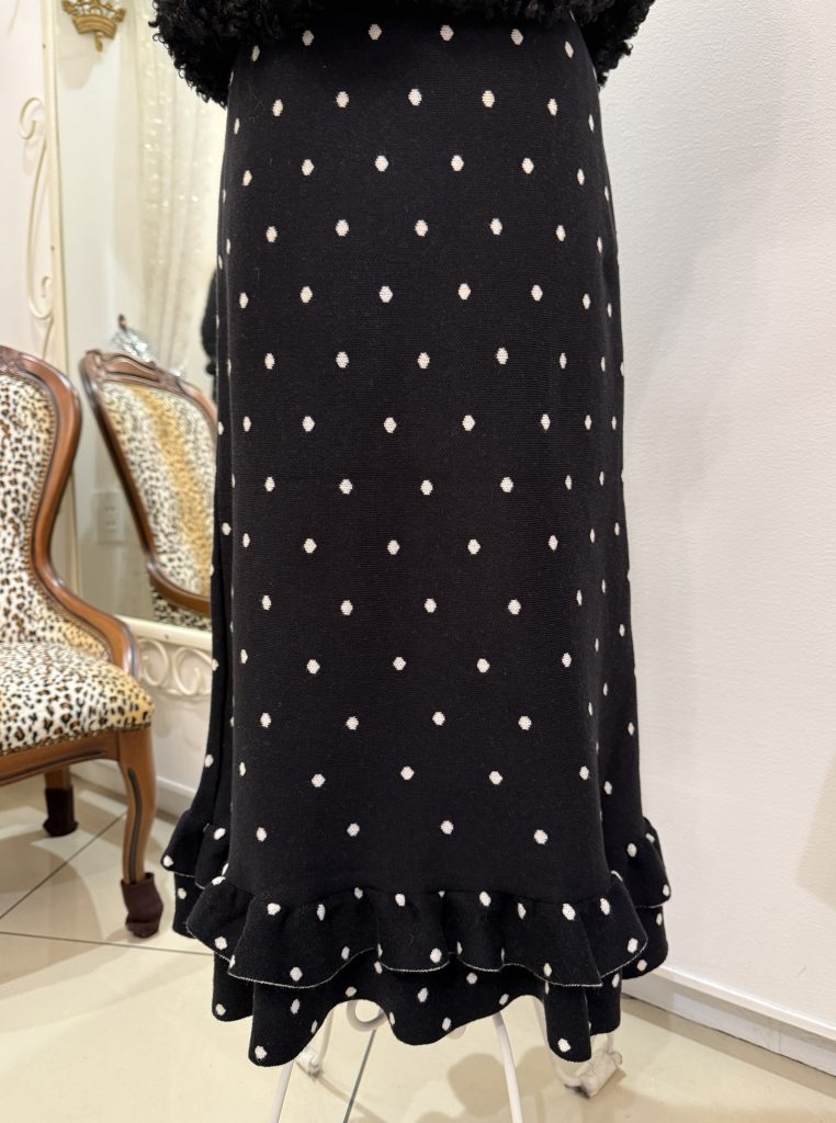 フリルのドットスカートを合わせました ♡♡♡ 暖かニット素材です