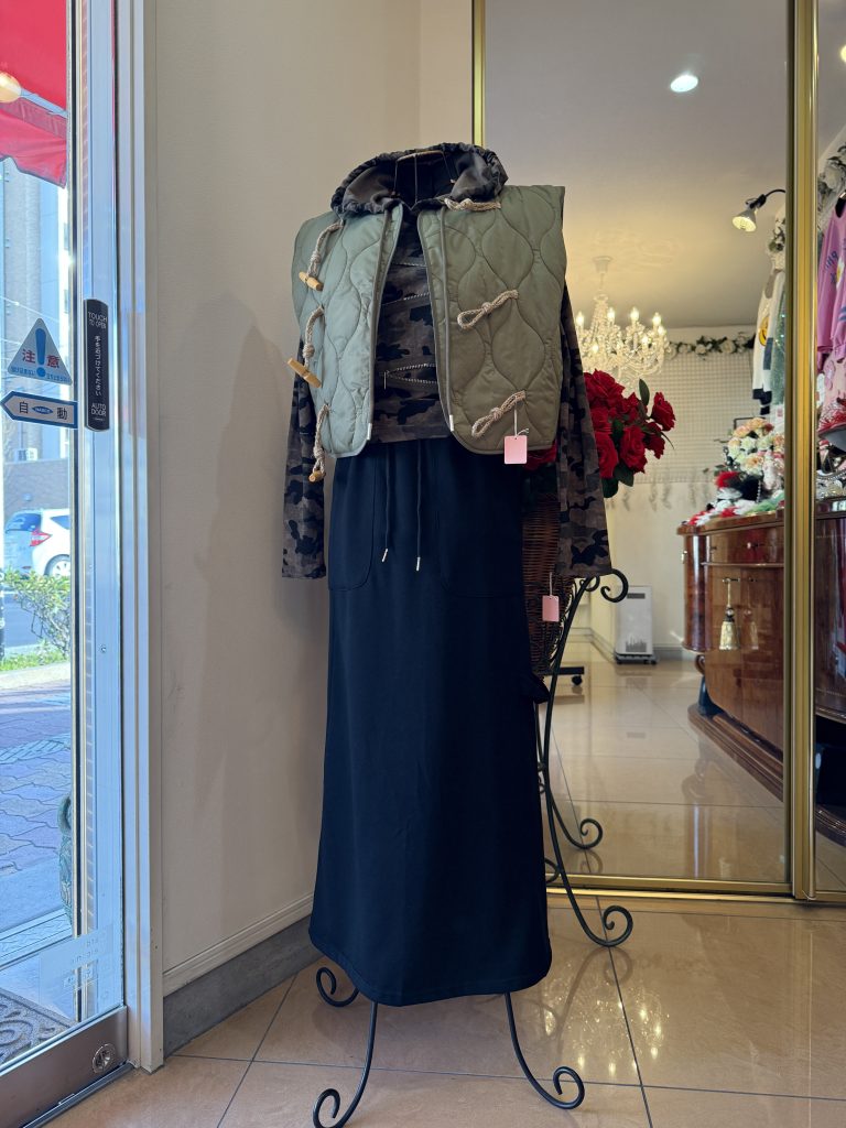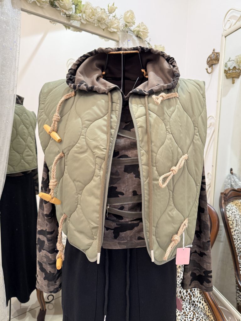 ダウンジレ迷彩色 ★★★ 不思議な可愛さ