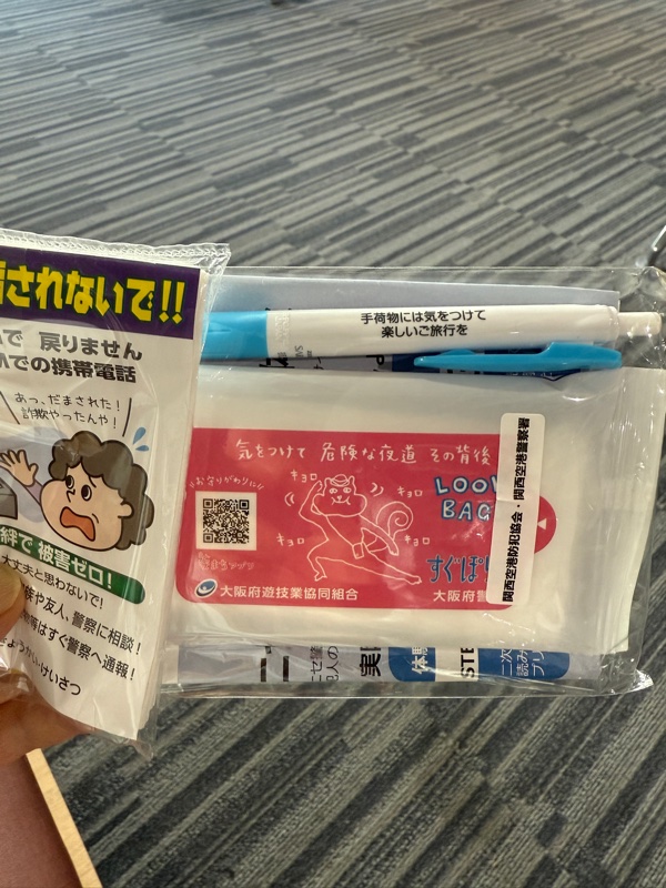 ウエットティッシュを買いにコンビニ向かってたら関空警察からもらった配り物がウエットティッシュだった