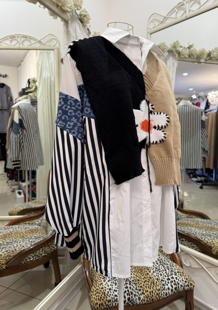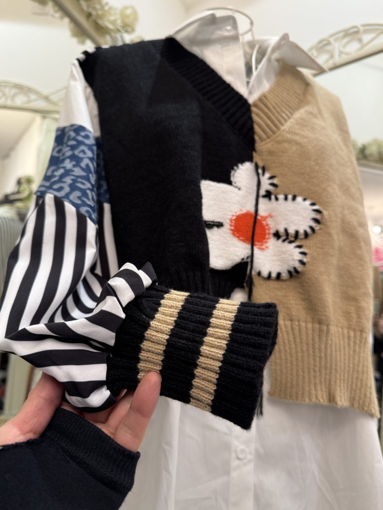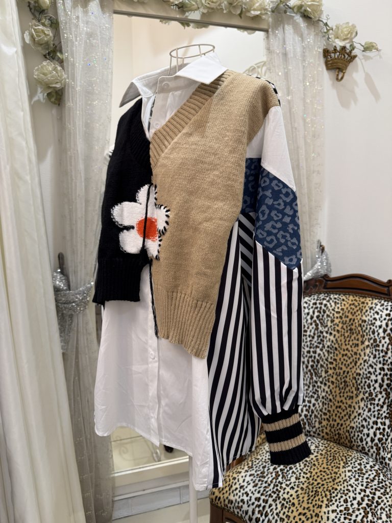 ニットチョッキ着てる風 ニット部分が前開きでないのでプルオーバーな着方になります