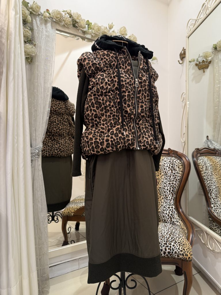 秋真っ盛りな装い カッコいいレオパードダウンベストを合わせたら無敵 😆