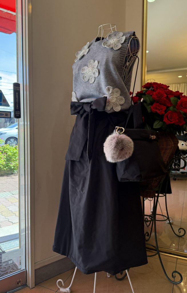 先日ご紹介したキルトワンピースブラックのお色違いカーキ